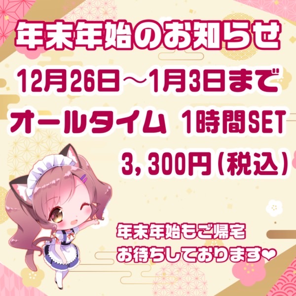 秋葉原店(2nd店との合同) 12月26日〜1月3日 16:00-28:00