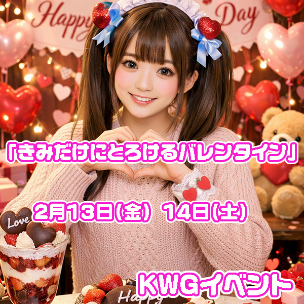 【川越店】2月13・14日「君だけにとろけるバレンタイン」 2026-02-03 21:54 イベント情報 バレンタインの詳細 2月13.14日(金土) ご帰宅ミッション・フード注文1pt・期間中2日間来店で2pt 来店特典・チョコプリン 衣装・私服
