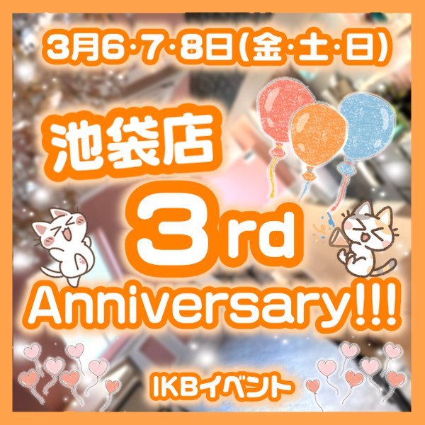 3月6・7・8日(金・土・日)池袋店 3rd Anniversary!!!🧡